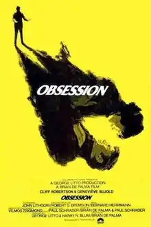 Obsession is a 1976 American neo-noir psychological thriller film directed by Brian De Palma, starring Cliff Robertson, Geneviève Bujold, and John Lithgow. The screenplay was written by Paul Schrader, from a story by De Palma and Schrader. Bernard Herrmann provided the film's soundtrack before his death in 1975. The story is about a prominent New Orleans businessman who is haunted by guilt following the death of his wife and daughter during a kidnapping-rescue attempt gone wrong. Years later, he meets and falls in love with a young woman who is the exact look-alike of his long dead wife.