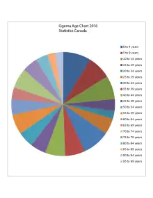 A pie chart examining the largest and smallest age groups of Ogema in 2016 from youngest to oldest