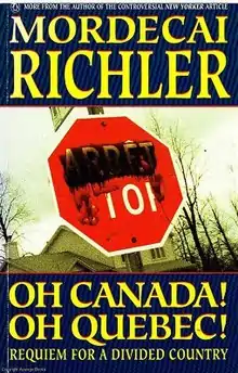 Oh Canada! Oh Quebec! Requiem for a Divided Country is a book by Canadian novelist Mordecai Richler. Published in 1992, it parodied the evolution of language policy in Quebec, and spoofed the Canadian province of Quebec's language laws that restrict the use of the English language. The book, a best-seller, grew out of a long article published in a September 1991 issue of The New Yorker.