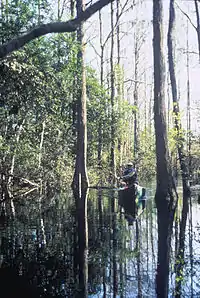 Refuge staff and volunteers work to preserve the natural qualities of the swamp, provide habitat for a variety of wildlife, and provide recreational opportunities for visitors.[10] They also conduct prescribed burns in upland areas, thin forests, create wildlife openings, plant longleaf pines, and monitor, manage, and improve wildlife populations and habitat.[10]