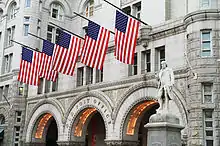 - ↑ Photographs of arches in main entrance to Old Post Office Pavilion in Wikimedia Commons: