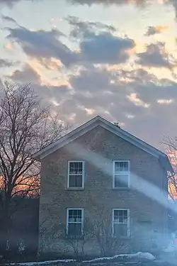 It is a two-story building constructed of limestone rubble, with massive blocks of dressed limestone serving as quoins and lintels. It has a central chimney and a gable roof. Its interior dimensions are 22 feet (6.7 m) by 36 feet (11 m). The school was converted into a one-family house in the 1890s and into a multiple unit residence in the 1950s.[2]
