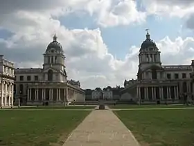 The Old Royal Naval College are buildings that serve as the architectural centrepiece of Maritime Greenwich,[1] a World Heritage Site in Greenwich, London, described by the United Nations Educational, Scientific and Cultural Organisation (UNESCO) as being of "outstanding universal value" and reckoned to be the "finest and most dramatically sited architectural and landscape ensemble in the British Isles".[2] The buildings were originally constructed to serve as Greenwich Hospital, designed by Christopher Wren, and built between 1696 and 1712.[3][4] The hospital closed in 1869 and so between 1873 and 1998 the buildings were used as a training establishment for the Royal Naval College, Greenwich.[5] The site is now managed by the Greenwich Foundation for the Old Royal Naval College, established in 1997 to conserve the buildings and grounds and convert them into a cultural destination.[6]