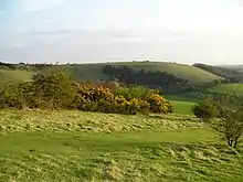 On the summit of the hill is an Iron Age hill fort. Within the hill fort can also be found Bronze Age barrows dating between 2100 to 750 BCE. The fort itself was probably built in the Early or early-Middle Iron Age (600-300 BCE) and fell out of use around the beginning of the Late Iron Age (150-100 BCE), as this is the general pattern for hill forts in the south-east of England. More modern archaeology dates from World War II when the British Army used the hill as a mortar testing range. Some unexploded Ordnance may still remain in 'fenced-off' sections of the hill however grazing hill-sheep access all areas so danger to the casual walker is likely to be low.[6]