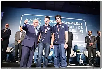 The Brazilian Mathematical Olympiad of Public Schools (Portuguese: 'Olimpíada Brasileira de Matemática das Escolas Públicas') (OBMEP) is an annual Mathematics contest created in 2005 by the Brazilian Ministério da Ciência e Tecnologia (MCT) and Ministério da Educação (MEC), in collaboration with Instituto Nacional de Matemática Pura e Aplicada (IMPA) and Sociedade Brasileira de Matemática (SBM),[1] to stimulate the mathematics education in Brazil.[2] It is open to public school students from fifth grade to high school. In 2014 more than 18 million students were enrolled for its first round.[3]