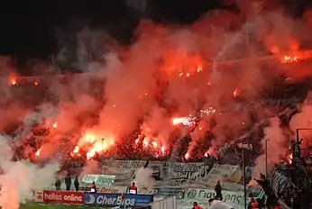 ![]() PAOK vs Olympiacos (1–0) at Toumba Stadium during a Greek Cup match in February 2009. | |