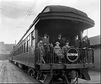 In 1926 the Olympian was scheduled to run from Chicago to Seattle in 70 hours. That year Milwaukee contracted with Pullman-Standard for new cars and the train was re-equipped, the new trains making their first runs in August 1927.[1]: 51 The steel cars were painted orange and maroon and were among the first to carry broadcast radio receivers. The Olympian was the first western transcontinental train to be equipped throughout with roller-bearings. Capitalizing on its soot-free electrification, the train carried open gondola cars during the summer. To increase ridership the Milwaukee Road opened its first railroad-owned hotel near Yellowstone National Park, the Gallatin Gateway Inn. Gallatin Gateway was reached from a spur that reached the main line at Three Forks, Montana, and prior to the Great Depression the Olympian carried through sleepers for it.[1]: 51