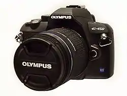 The Olympus E-450 (or Olympus EVOLT E-450 in North America) is a 10.0 megapixel digital single-lens reflex (DSLR) camera made by Olympus and conforming to the Four Thirds System standard. E-450 was announced in March 2009, and shipping started in May the same year. E-450 is similar in size to its siblings in the E-4XX series, marketed as the smallest DSLRs in the world.[1]