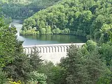 The Ondaine has its source in the woods of Neyranche in the commune of Planfoy[1] at an elevation of 1,020 metres (3,350 ft),[2] where it is called the Ondenon. When passing through the town of La Ricamarie it takes the name Ondaine. Its basin covers 122 square kilometres (47 sq mi)[1] mostly in the department of the Loire, but also in part of Haute-Loire.