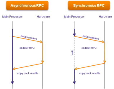 HMPP provides synchronous and asynchronous RPC. Implementation of asynchronous operation is hardware dependent.