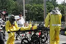 As a result of the 1995 sarin gas attack on a Tokyo subway and the growing concern about a terrorist chemical attack, the U.S. Congress passed laws to implement a program to train civilian agencies on responding to incidents involving Weapons of Mass Destruction (WMD).[1] In response, the U.S. Army Reserve Command's Homeland Defense Office, then under the direction of LTC Jon M. Byrom, US Army Reserve developed an annual exercise to integrate collective training with specialized HAZMAT protection and decontamination equipment for Army Reserve units with this homeland defense mission. This annual exercise began in 2004 when the 472d Chemical Battalion, under the command of Lieutenant Colonel Scott S. Haraburda, was selected to provide operational command and control over nearly 400 Chemical, Biological, Radiological, Nuclear and high- yield Explosives (CBRNE) defense soldiers.[2] The following year, the exercise doubled in size to 800. In 2006, the 464th Chemical Brigade commanded this exercise, again under newly promoted Colonel Haraburda as the brigade commander, commanding over 1,100 chemical, military police, and medical soldiers, laying the groundwork for future training efforts with non-military organizations as part of the Defense Support of Civil Authorities for large-scale chemical defense missions. This exercise eventually grew to over 3,000 soldiers with ten civilian hospitals in 2009 and to include foreign contributions with Canadian soldiers in 2014.[3][4][5][6][7][8]