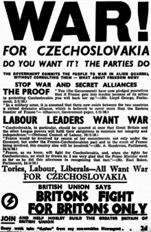 British Union of Fascists' advertisement in Action (1938), opposing Britain's entry into the Second World War.