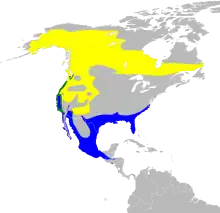 Their breeding habitat is open shrubby areas across Canada, Alaska and the western United States. These birds migrate in the winter to the southern United States and south to Central America. Although they are quite common in the western United States, they are uncommon in the east.[9]