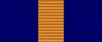 The Order of Kutuzov is suspended from a standard Russian pentagonal mount by a ring through the suspension loop. The mount is covered by an overlapping dark blue silk moiré ribbon with a central 5mm wide orange stripe.[6]