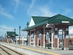 The Orem FrontRunner Station is the main part of the Orem Intermodal Center. UTA refers to it as an intermodal center because it operates the northern terminus of UVX bus rapid transit (BRT) line that connects the station to Provo Central Station.[7] Originally there were plans to construction an actual station building (similar to the Ogden Intermodal Transit Center), however, as of August 2013, there is no indication that any work on the anticipated building will begin anytime in the near future.[8]