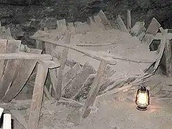 The cave was used since before 1835 as a source for nitre (saltpeter) for the manufacture of gunpowder. During the American Civil War, Confederate soldiers under the command of General Robert E. Lee again mined the cave for nitre. The cave today has the nation's largest collection of Civil War-era saltpeter hoppers. Studies have shown the cave dirt is high in calcium nitrate, which was turned into potassium nitrate using these hoppers.[7]
