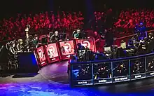 Origen facing SK Telecom T1 in the 2015 Worlds semifinals