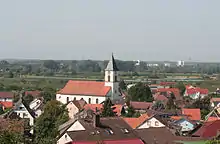 St. Bartholomew parish church was constructed by Hans Voß in a style similar to Weinbrenner's architecture. Marie Ellender created the paintings in Nazarene style that can be found by the altar.