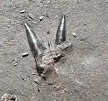 Orthacanthus and Triodus have a predator-prey relationship in which Orthacanthus preyed on Triodus.[14] Cranial remains of specimens of both Orthacanthus and Triodus from the Upper Carboniferous in Puertollano basin, Spain, give evidence of this predator-prey relationship.[14] Numerous and well preserved cephalic elements of Triodus were associated with the cranial remains of Orthacanthus, and is explained by the inclusion of occipital spines of Triodus in the buccal cavity of Orthacanthus.[14] Additional evidence is the co-occurrence of one Orthacanthus spine with many Triodus spines, which likely penetrated the soft tissue and cartilage of the mouth of Orthacanthus, similarly to modern sharks that feed on stingrays where the spines of stingrays have been found within and around the buccal cavities of Carcharhinus, Galeocerdo, Negaprion and Sphyrna.