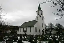 Os Church (Norwegian: Os kyrkje) is a parish church of the Church of Norway in Bjørnafjorden Municipality in Vestland county, Norway. It is located in the village of Osøyro. It is one of the two churches for the Os parish which is part of the Fana prosti (deanery) in the Diocese of Bjørgvin. The white, wooden church was built in a long church design in 1870 using plans drawn up by the architect Ole Vangberg. The church seats about 600 people.[1][2]