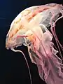 The walk-through aquarium displays marine life in several habitats comprising 27 tanks in 16 main exhibits with a total volume of 10,941 tons of water. The habitats are from the Ring of Fire area of the Pacific Ocean and these include the Aleutian Islands (tufted puffins), Monterey Bay (California sea lions and largha seals), Gulf of Panama (ring-tailed coati, long-spine porcupinefish and blotcheye soldierfish), Ecuador Rain Forest (arapaima, red-bellied piranhas, capybara & green iguanas), Antarctica (Adélie, gentoo & king penguins), Tasman Sea (Pacific white-sided dolphins) and Great Barrier Reef (palette surgeonfish, pennant coralfish & threadfin butterflyfish), Seto Inland Sea (common octopus, Japanese spiny lobster & red seabream), Coast of Chile (Japanese anchovies and South American pilchards), Cook Sea Strait (loggerhead sea turtles, deepwater burrfish & scarlet wrasse), Japan Deeps (Japanese spider crabs, elephant fish & Hilgendorf's saucord) and a jellyfish gallery (moon jellyfish & northern sea nettle).[10]