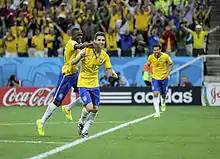In the opening match of the 2014 FIFA World Cup, on 12 June against Croatia in São Paulo, Oscar scored in injury time with a toe-poke from outside the box for the last goal in a 3–1 win.[68] In Brazil's record-breaking 7–1 semi-final defeat to Germany on 8 July, Oscar scored the only goal for Brazil in the 90th minute. Alongside Thiago Silva, he was one of two Brazilians included in the Team of the Tournament.[69] He also played and started every game.