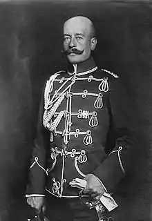 Chelius was the German military envoy to the Russian Empire right before World War I. Chelius was appointed as an adjutant general of Wilhelm II on 2 August 1914. At the Imperial Headquarters, he eventfully witnessed the collapse of Imperial authority and the monarchical system.[3] In 1917, he was sent to Belgium as part of the General Government. On 5 November 1918, Chelius became the President of the Commission on Military Orders. He stayed in this position until 8 December 1919 when Chelius retired from the army on his own request. He died at Munich on 26 June 1923.[4]