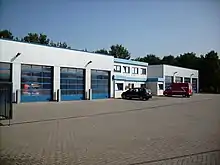 In 1904, Ostheim was connected to the Vorortbahnlinie A from Cologne to Königsforst. In order to ensure the power supply of the suburban railroad and the expected increased energy demand of the surrounding growing towns, the city of Cologne built an electricity plant in the immediate vicinity of the stop in the same year. Despite the growing population, only very few commercial enterprises settled in the town. In 1914, only 60 Ostheim citizens were employed in the brickworks Lüngen & Co and Karl Kuhlmann, the Backofentürenfabrik Karl Höffler and the electricity plant; the other workers were mainly employed in the neighboring industrial locations Kalk and Mülheim.[10] Around Saarbrücker Straße, the Saar-Siedlung, the first large-scale construction project of the district with single- and two-family houses, was built in the 1930s.