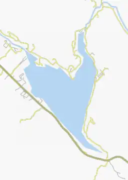 - 1.9 kilometres (1.2 mi) north-east in Saint-Donat, crossing the southern part of lac Chambord (which receives the waters of lac Croche), until at the bridge on Chemin Saint-Guillaume;