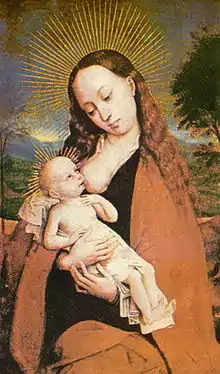 In the Catacombs of Priscilla, in Rome, a 2nd-century pictorial representation of the Virgin Mary may be found. Most likely it is a breastfeeding Virgin. There are other symbols referring to milk in the catacombs.