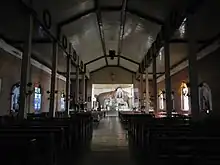 The church reflects the Spanish Colonial Revival architectural style and measures 81 metres (266 ft) by 21.3 metres (70 ft). [3] Its plastered brick facade was inspired by the Mexican style. The pediment is flat-topped and decorated with massive pinnacles. The octagonal window, together with the semicircular door and windows, accentuates the plastered finish wall. Its square pilasters, reaching up to the roof, are also decorated with pinnacles. [2]