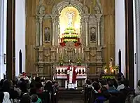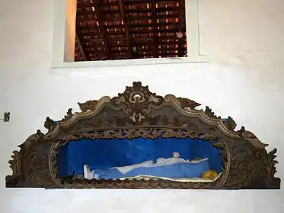 The religious traditions of the Week of Sorrows and the Feast of the Steps have been held during Lent since the 18th century by the local brotherhoods and confraternities, and with the extinction of these, the celebration was taken over by the Blessed Sacrament. Until mid 1940, on every Friday of Lent, there was a mass celebrated in the Church of Bonfim, where the choir and orchestra performed the Sorrows Motets attributed to Basílio Martins Braga Serradourada (1804-1874), as part of the celebrations of the Feast of the Steps.[42][43][44] However, the festivities of the Steps were paralyzed between the penultimate and last Friday before the Holy Week for the Week of Sorrows, and in it, the celebration of the Septenary of Sorrows, which was a paraliturgy that, for seven days, commemorated the meditation of the seven sorrows of Mary. It was held at the altar of Saint Francis of Paola in the Mother Church, where the image of the Sorrows was placed, and was prayed over by the vicar, who exposed the Blessed Sacrament there for the recitation of prayers, and accompanied by the Choir and Orchestra that performed a repertoire in Latin and Portuguese, with compositions by composers from Goiás.[45]