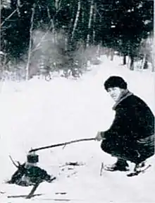 Backwood cooking is a method of cooking without the use of kitchen implements.[4] It commonly takes place in the backwoods, often in combination with wild or conventional camping. Some variants of backwoods cooking allow the use of items of cookware such as a cooking pot;[5] however there are many recipes without any. Some backwoods alternatives to cookware include aluminium foil,[4] fruit skins,[6] and heated stones.[7] Traditionally backwoods cooking takes place over a wood-burning fire because wood is the most available fuel source in the backwoods.[8] As a result, some recipes include information about the intensity of the fire to be used.[6]