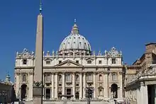 Monumental façade of St. Peter's Basilica in Rome, the world's largest Christian church