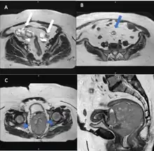 - ↑ Fischerova, Daniela; Burgetova, Andrea (2014-07-01). "Imaging techniques for the evaluation of ovarian cancer". Best Practice & Research Clinical Obstetrics & Gynaecology. Imaging in Gynaecology. 28 (5): 697–720. doi:10.1016/j.bpobgyn.2014.04.006. ISSN 1521-6934. PMID 24846098.