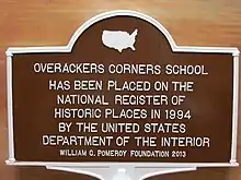 Overackers Corners Schoolhouse is a historic school located at Middlesex in Yates County, New York. It is an Italianate style structure built about 1874.[2] The school reopened in 1998 after renovation by the Middlesex Heritage Group.[3]