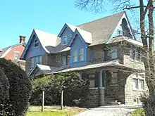 A more recent development of smaller homes with modern incursions, called Greenhill Farms, is not included within the historic district. This development extends from 66th Street to 72nd Street. Bordered on three sides by Morris Park and on the west by City Avenue, it includes some original mansions built on Wistar Morris' gentleman's farm. The City Line Avenue Bridge was listed on the National Register of Historic Places in 1988.[1]
