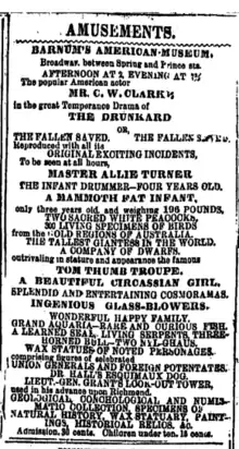 34. 1 2 Barnum, Phineas (1888). The life of P. T. Barnum. Buffalo, N.Y.: The Courier Company. p. 237. {{cite book}}: |work= ignored (help)