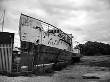 PS Ryde is a paddle steamer that was commissioned and run by Southern Railway as a passenger ferry between mainland England and the Isle of Wight from 1937 to 1969, with an interlude during the Second World War where she served as a minesweeper and then an anti-aircraft ship, seeing action at D-Day. After many years abandoned on moorings at Island Harbour Marina on the River Medina, she was purchased by the PS Ryde Trust in late 2018, with the intention of raising money for her restoration.[2][3][4] That project was abandoned in January 2019.[5]