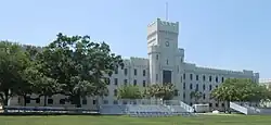 Padgett-Thomas Barracks is the dominant building on the campus of The Citadel in Charleston, South Carolina. Constructed from 1920 to 1922 as the first building on The Citadel's new site but demolished and replaced from 2000 to 2004, the barracks serves as the living quarters for up to 560 members of the South Carolina Corps of Cadets. The eight story tower which distinguishes it from the other four, smaller, barracks on Campus of The Citadel is also styled as a brand mark of the military college.[1][2][3][4]
