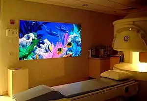 To successfully diagnose a paediatric condition, high-quality images are needed to give a diagnosis. To achieve this requires creating an environment where a child is comfortable. This is one of the most essential elements to paediatric radiology. For imaging departments which specialise in paediatric radiology, this is very easy as rooms can be tailored to suit a child's needs. For example, bright wall designs, visual stimulation and toys. These can be permanent fixtures as the department wouldn't need to cater to any other age range. For departments which only see children occasionally, creating a 'child friendly' environment is more difficult. It is usually achieved by creating one room a 'child friendly room' where murals / stencils can be painted on the wall. Modern children's hospitals are now designed with much glass to allow as much natural light in as possible, the Evelina Children's Hospital being one of these.