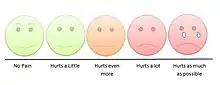 - ↑ Stinson JN, Kavanagh T, Yamada J, Gill N, Stevens B (November 2006). "Systematic review of the psychometric properties, interpretability and feasibility of self-report pain intensity measures for use in clinical trials in children and adolescents". Pain. 125 (1–2): 143–57. doi:10.1016/j.pain.2006.05.006. PMID 16777328. S2CID 406102.