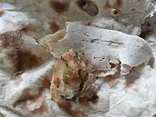 Gilgiti cuisine is the cuisine of Gilgit-Baltistan, Pakistan. Prominent Gilgiti dishes, such as the Chapshoro have gained massive popularity among different parts of Pakistan. Dumplings (Locally called Mumtu) are often served with yogurt and parsley and black pepper, vinegar, chili sauce.
