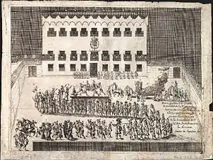 King Philip IV confiscated the building in 1652 and purposed it to serve as the new residence of the Viceroy of Catalonia (also known as Lieutenant) moving from the Palau del Lloctinent. By order of Viceroy Vicente Gonzaga Doria a new palace was constructed between 1668 and 1688. The architect was Josep de la Concepció, a Carmelite friar, who designed a baroque building. The palace had a quadrangular plan with a central courtyard, three levels with balconies and a facade with Gothic elements. Of the interior, the main hall, called Sala de Festes, stood out, with a rectangular floor plan and two floors high. In 1700, by initiative of viceroy Prince George of Hesse-Darmstadt a connection was added to the Santa Maria del Mar church. During the War of the Spanish Succession Archduke Charles of Habsburg was installed as king of Spain in the building in 1705. Three years later, he married Elisabeth Christine of Brunswick-Wolfenbüttel in the Santa Maria del Mar in 1708. They resided in the palace until 1711, when they left for Vienna in Austria. With the Nueva Planta decrees the office of the viceroy was abolished, and the palace became the residence of the Captain General of Catalonia. The palace got a façade in a neoclassical style in 1771, designed by the architect Juan Miguel de Roncali.