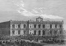 In July 1872, both the palace and the park were inaugurated and the exposition took place soon after. After the exposition, the palace was home to the Society of Fine Arts. During the War of the Pacific the building was looted.[2] After the looting it was used as a hospital and later a garrison for the Chilean army.
