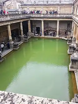 - ↑ Roomy recesses (A), young men's hall (B), bag room (C), dust room (D), cold washing room (E), anointing room (F), cold bath room (G), furnace room (H), sweating bath (I), Laconicum (K), warm washing room (L).