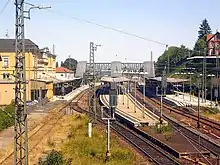 During the German rail reform, the line became the property of Deutsche Bahn on 1 January 1994. From 1995 onwards, Neustadt (Weinstr) Böbig halt, which is located in the eastern area of Neustadt Hauptbahnhof, could be served by trains on the Ludwigshafen–Neustadt line, although previously it had only been served by trains on the Palatine Northern Railway.[64] In 1996, VRN tickets could be used as far as Kaiserslautern.[60] From 1993 to 1999, the number of passengers on the Weidenthal–Neustadt section rose from 1500 to 3270 per day.[65] Neidenfels station went into operation between Lambrecht and Weidenthal in 1998. In May of the same year, the Federal Government and Deutsche Bahn signed a financing agreement worth 351.4 million DM to upgrade the line between Mannheim and Saarbrücken. This work was expected to be completed by 2004.[66] The first stage saw an upgrade for tilting trains with a top speed of 160 km/h. The tracks on the St. Ingbert–Kirkel and Neustadt an der Weinstraße–Ludwigshafen sections are now ready for a line speed of 200 kilometres per hour.[67] A bypass was built, which has allowed long-distance passenger and freight trains to bypass Schifferstadt since 2003.