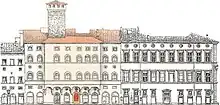 The Bartolini had owned property in this sector since 1348. They progressively extended their holdings till by the 16th century they owned nearly the entire city block. The best known construction for the family here was the palace on Piazza Santa Trinita.[2]