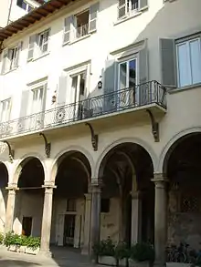 Passed down through hereditary lineage to the Caccini, it was progressively enlarged by them (during the years of prior Francesco Domenico), until a unitary renovation was carried out that literature places between 1561 and 1564 circa and refers to Giovanni Caccini, an intimate of the Medici family (but not to be confused with the architect Giovanni Battista Caccini of Montopoli in Val d'Arno), however assisted by Giorgio Vasari.[1] All that remains of Caccini are the initials G. C. A. [rchitect or Alexandri (son of Alexander)] F.[iorentino or fecit]. carved on some architraves on the ground floor.
