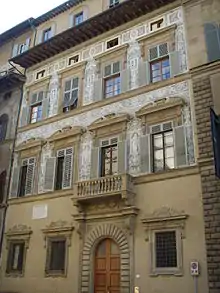 Other sources state the Del Nero family sold it to the Scarlatti family. This latter family appears to have employed Alfonso Parigi the Elder in refurbishment.[3] The dating of the facade and the graffito is unclear; most sources date it to around the first half of the seventeenth century.